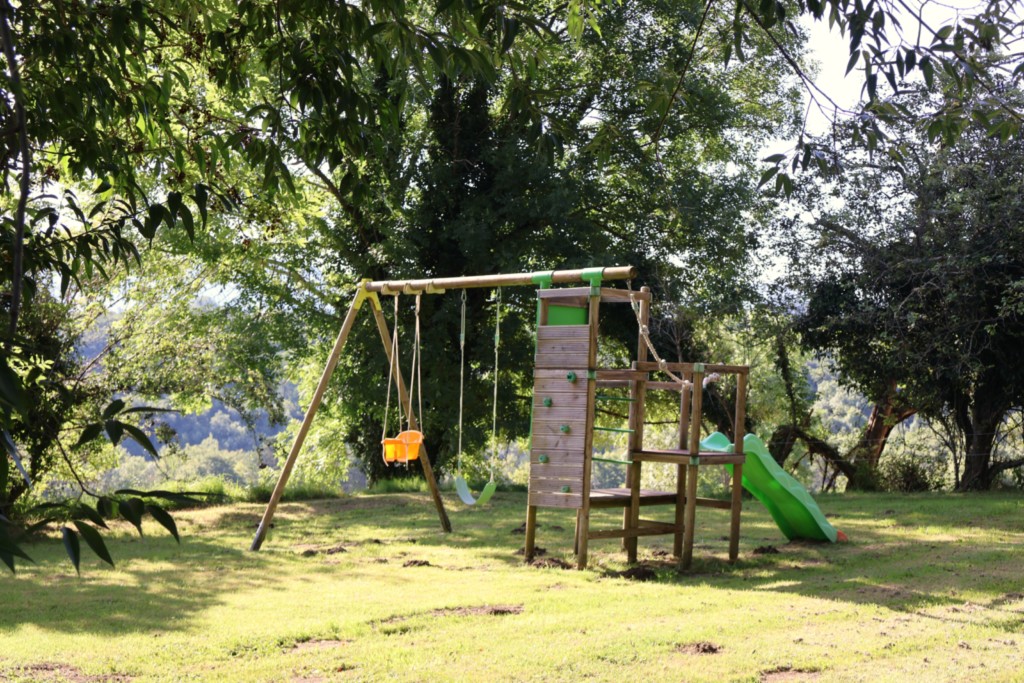 Posée face aux montagnes dans un espace semi-clos, un peu à l'écart, elle permet de vivre au calme, à l'abri des regards, bercés par le chant des oiseaux et le vent dans les feuilles des arbres.