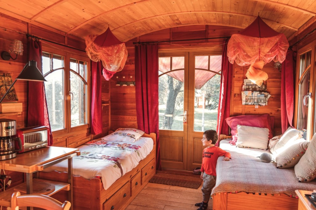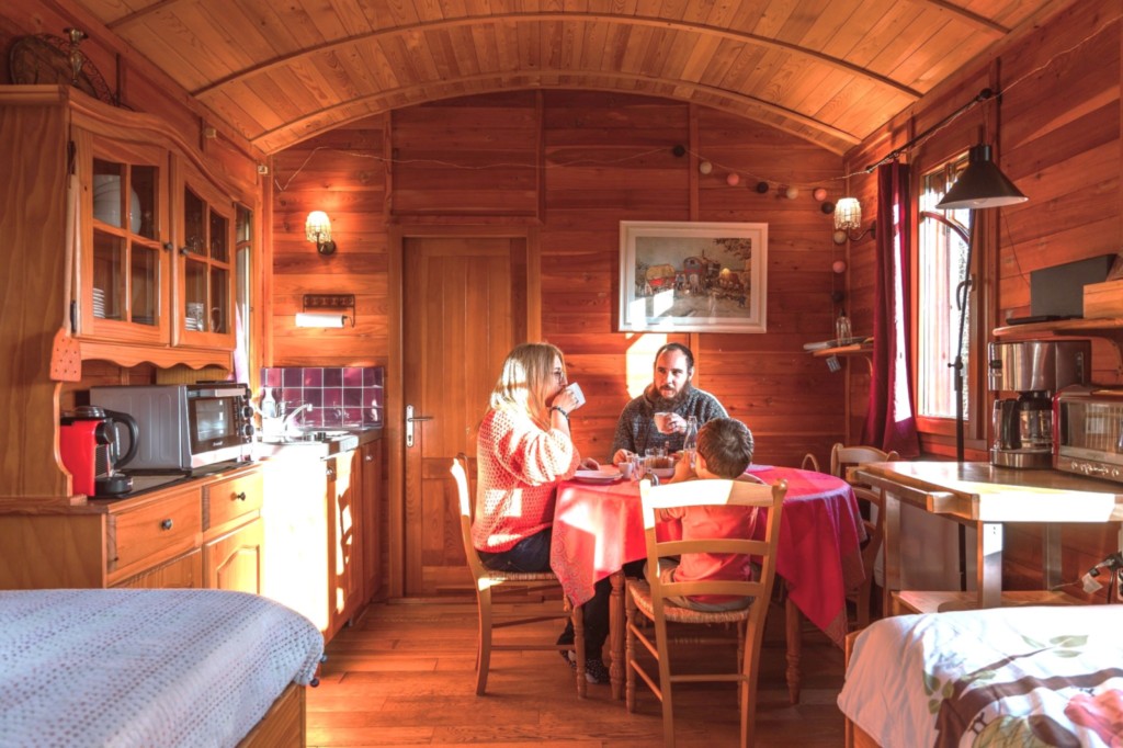 Venez passer un week-end ou des vacances insolites avec vos enfants ou petits-enfants dans une grande roulotte de charme tout confort.